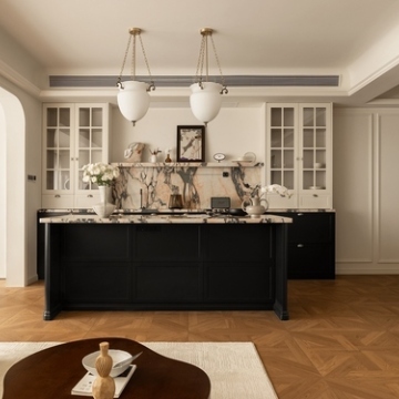 130㎡法式住宅,大橫廳里的煙粉島臺成了視覺C位